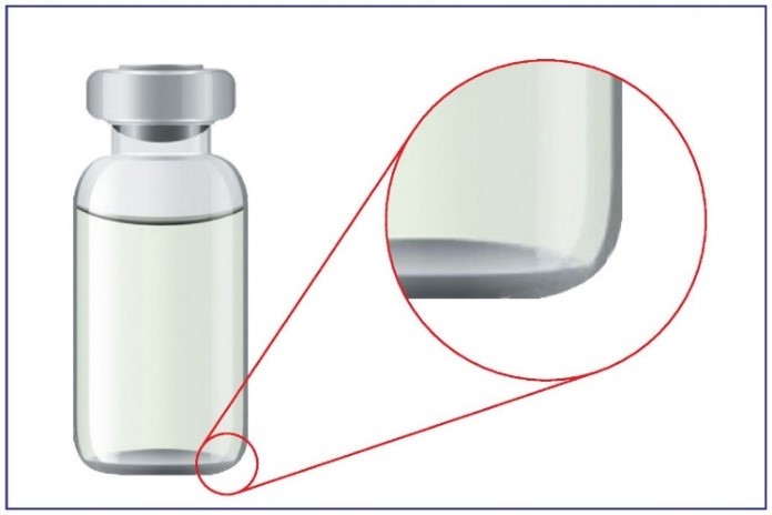 Difference between controlled and delaminated product packed in glass container (Illustration)
